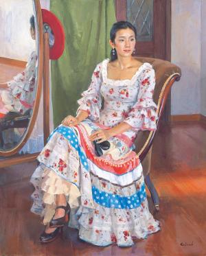 竹喬美術館所蔵作品を年代順に一期、二期、三期と分けて展覧して、丁度今私の次女をモデルにした《パリージョを持つ踊子》が展示されています(第三期)。